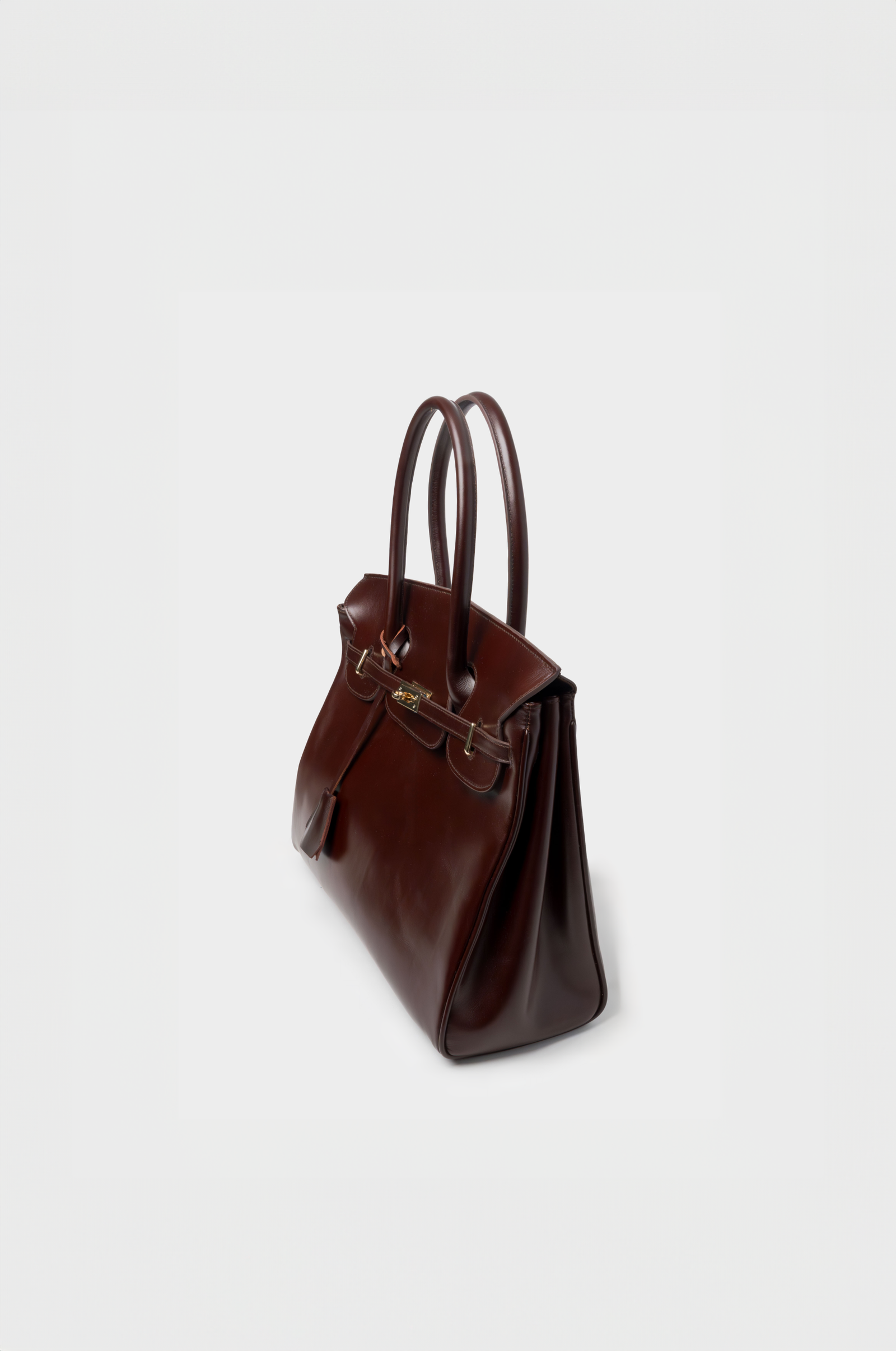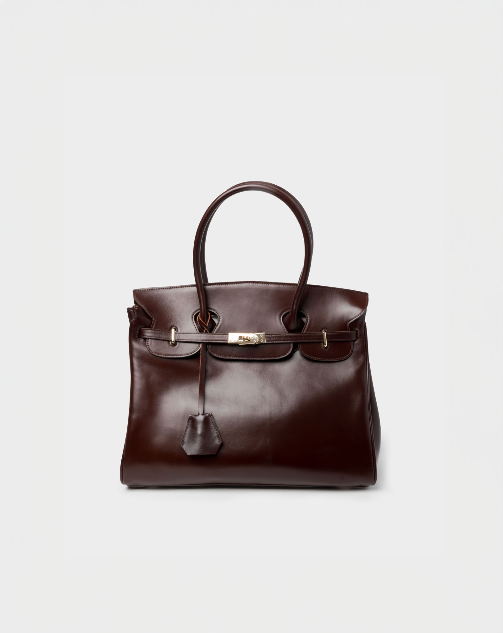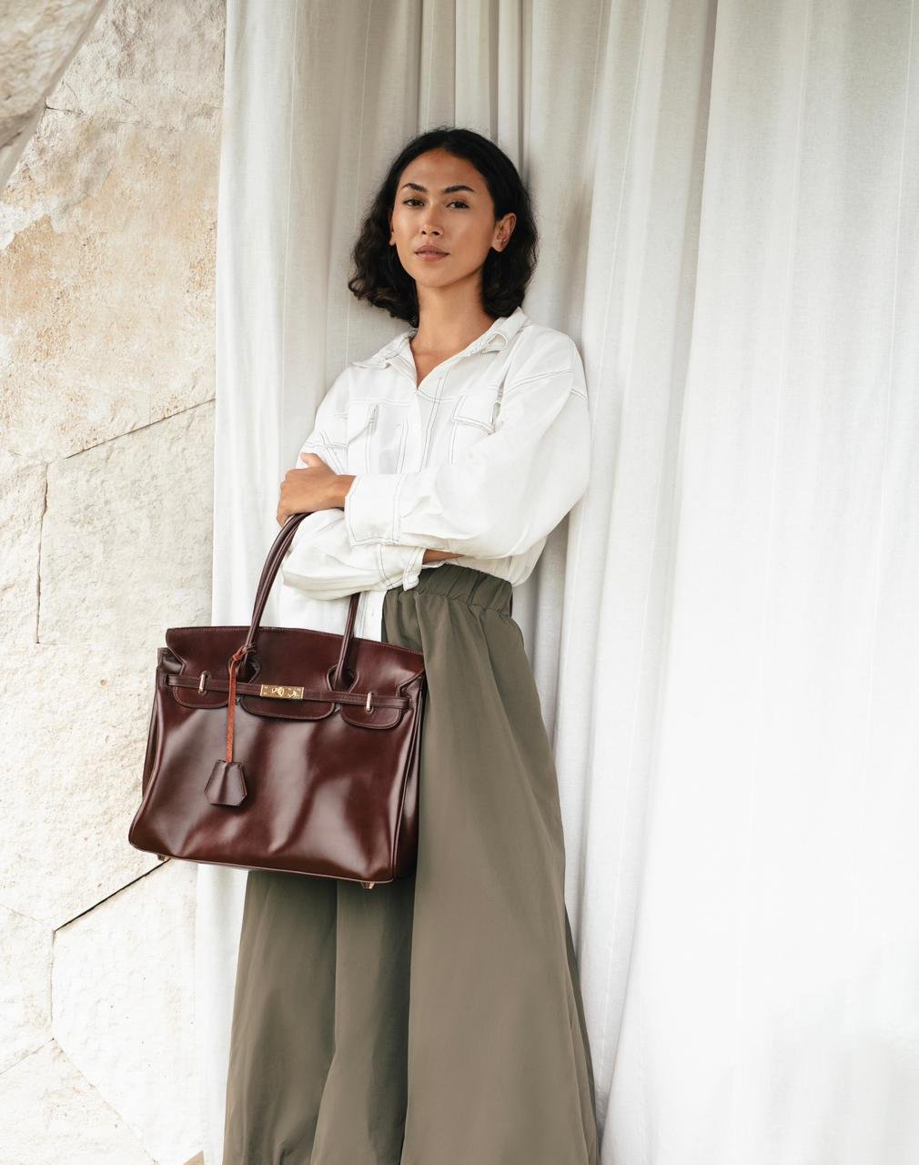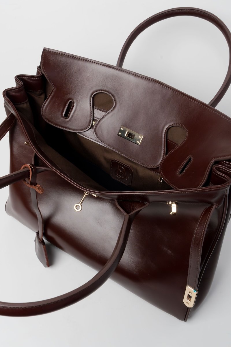 A deep caramel shade with a hint of red, this piece is crafted from pull-up leather. It features a structured and glossy leather.